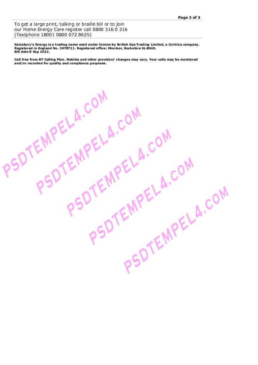 UK United Kingdom Sainsbury’s Energy (British Gas) Utility Bill Proof of Address word pdf