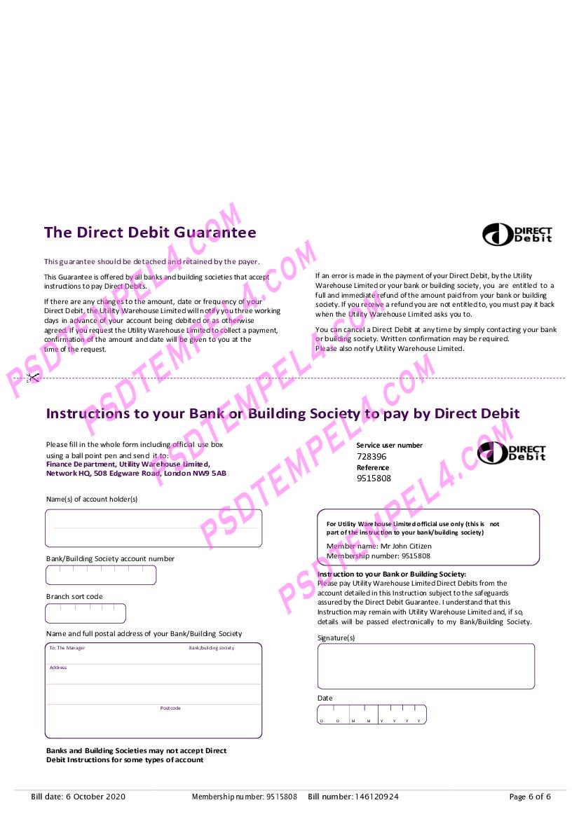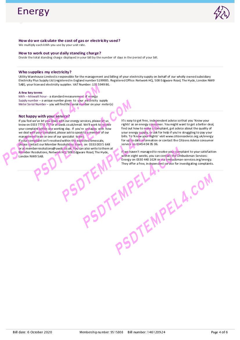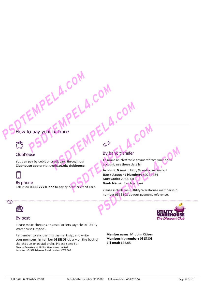 UK United Kingdom utility warehouse Utility Bill PDF File Free Download