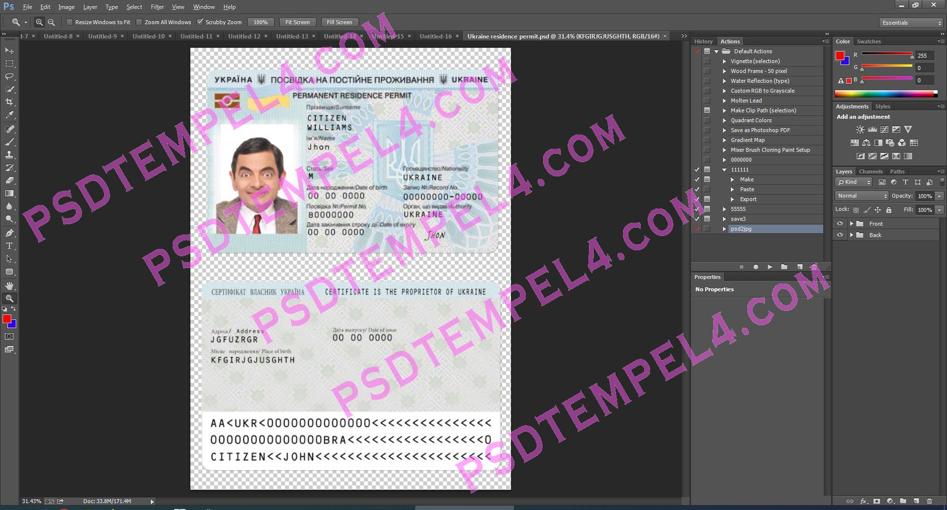 Download Ukraine Residence Permit psd templates