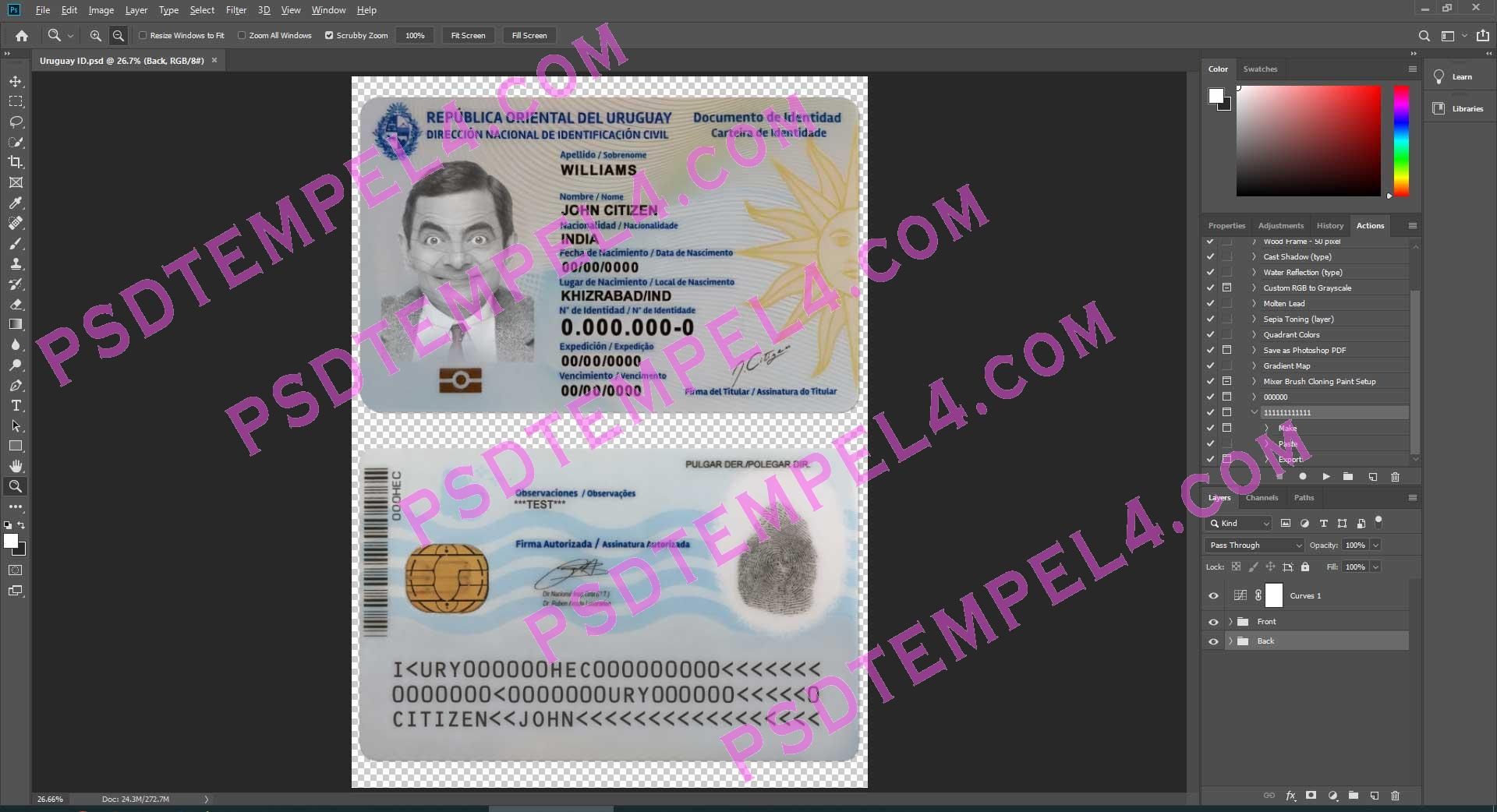 Fake Uruguay id card PSD Photoshop buy Online