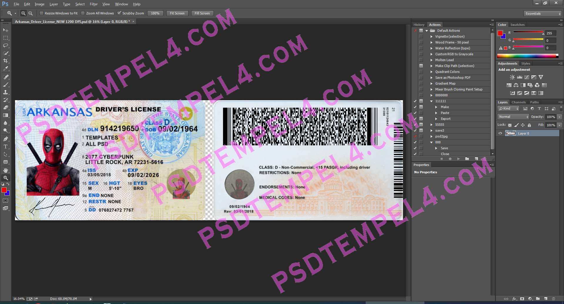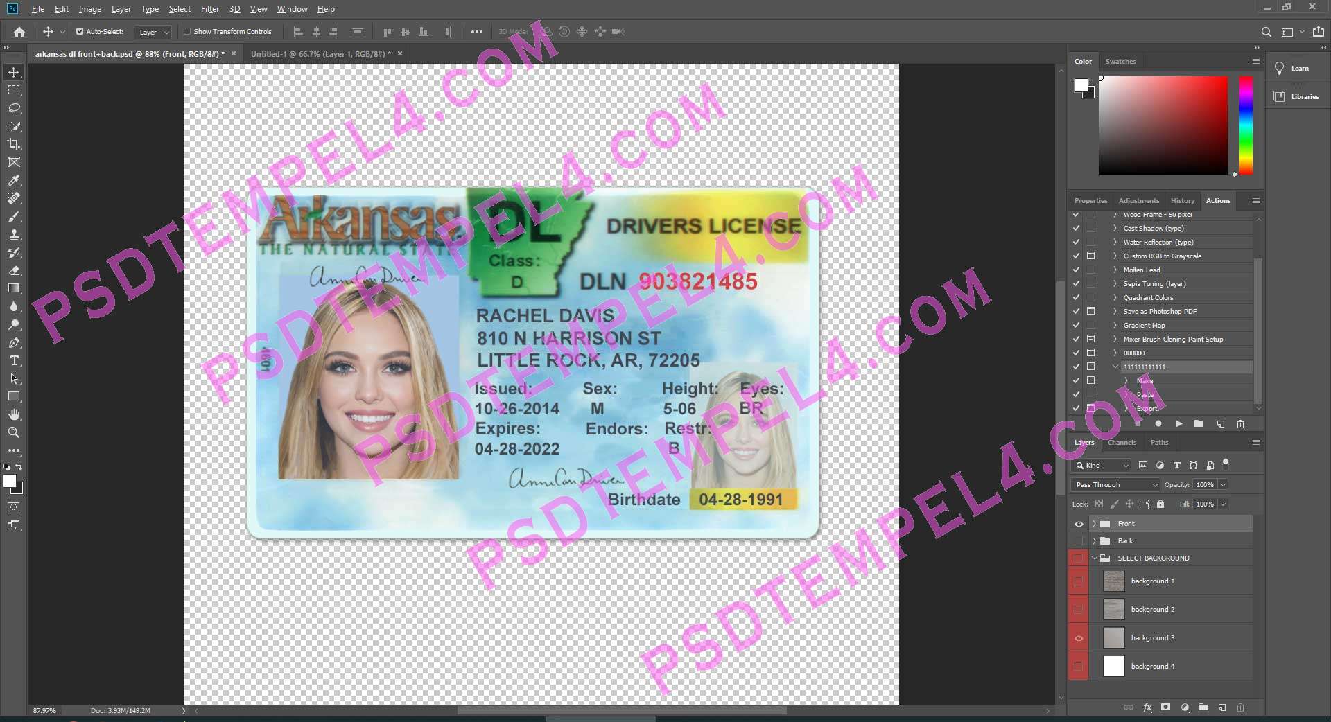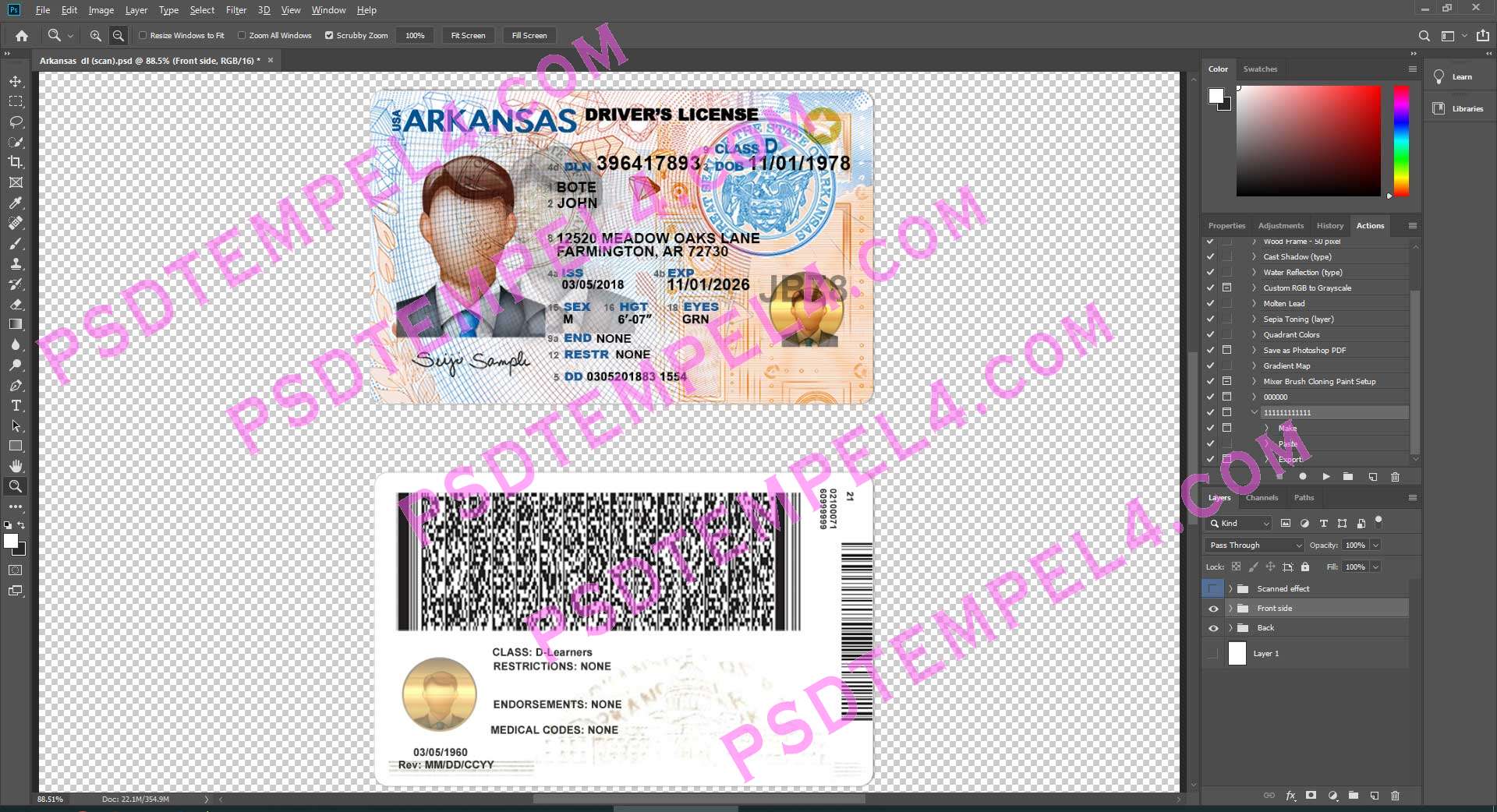 Download USA Arkansas Driver License Photoshop PSD File Template Fully Editable