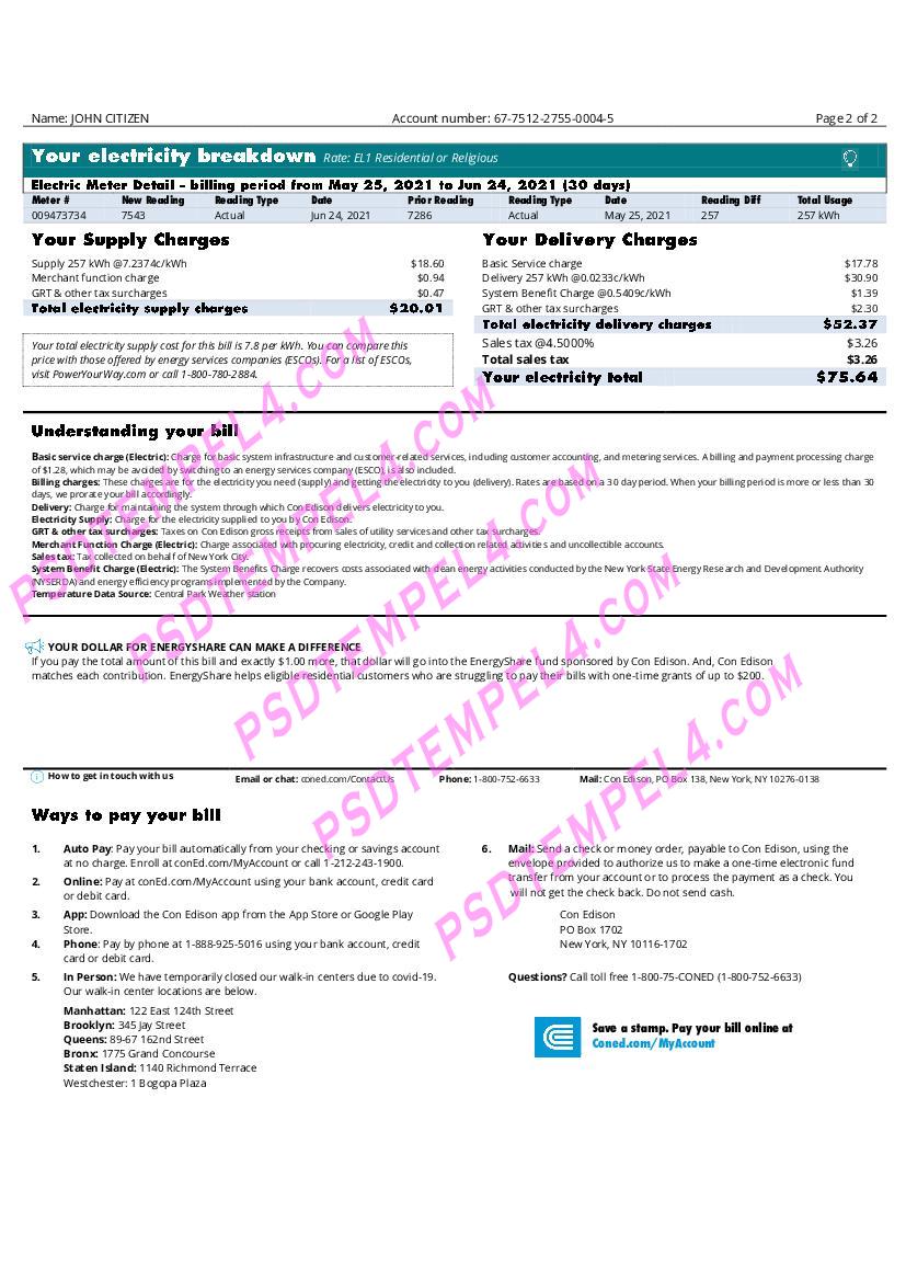 For the most up-to-date formats, you can download USA utility bill 2025 versions. These updated templates reflect the latest design and format used by USA Con Edison for the current year. Whether you need a new bill for proof of address or are managing administrative tasks, this updated version ensures you have the most accurate and current billing information.