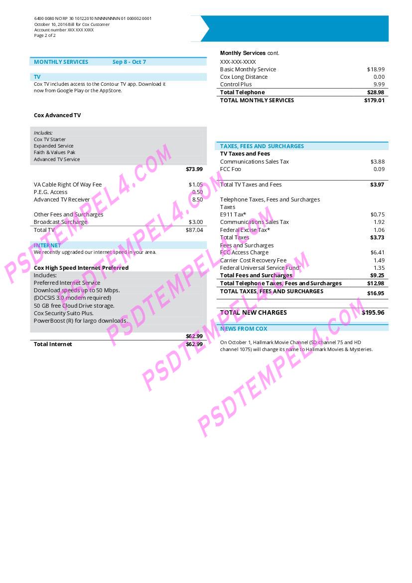 For the most up-to-date formats, you can download USA utility bill 2025 versions. These updated templates reflect the latest design and format used by USA COX for the current year. Whether you need a new bill for proof of address or are managing administrative tasks, this updated version ensures you have the most accurate and current billing information.
