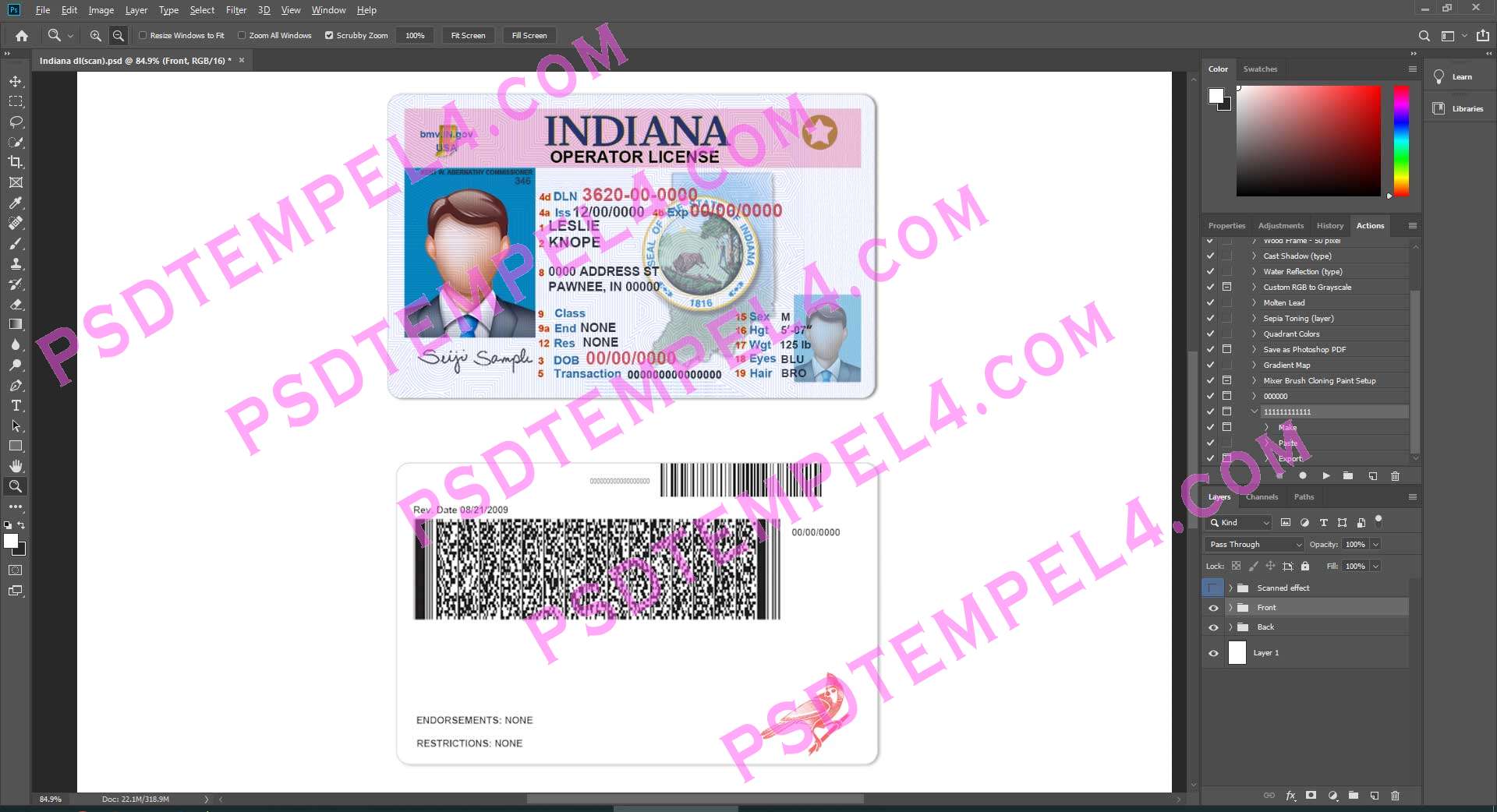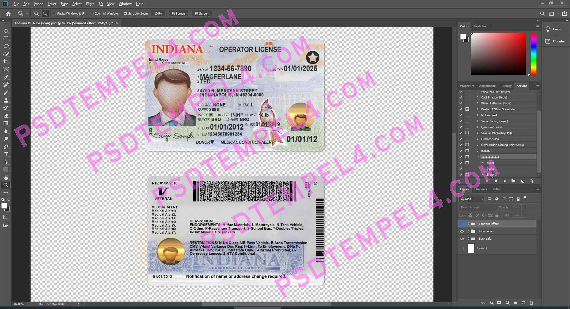 Download USA Indiana Driver License File PSD templates high quality
