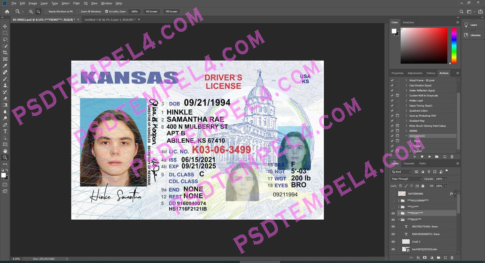 Download USA Kansas Driver License Photoshop PSD File Template Fully Editable