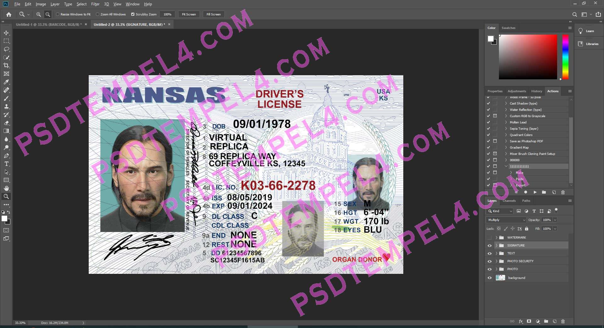 Fake USA Kansas Driver License PSD Photoshop buy Online
