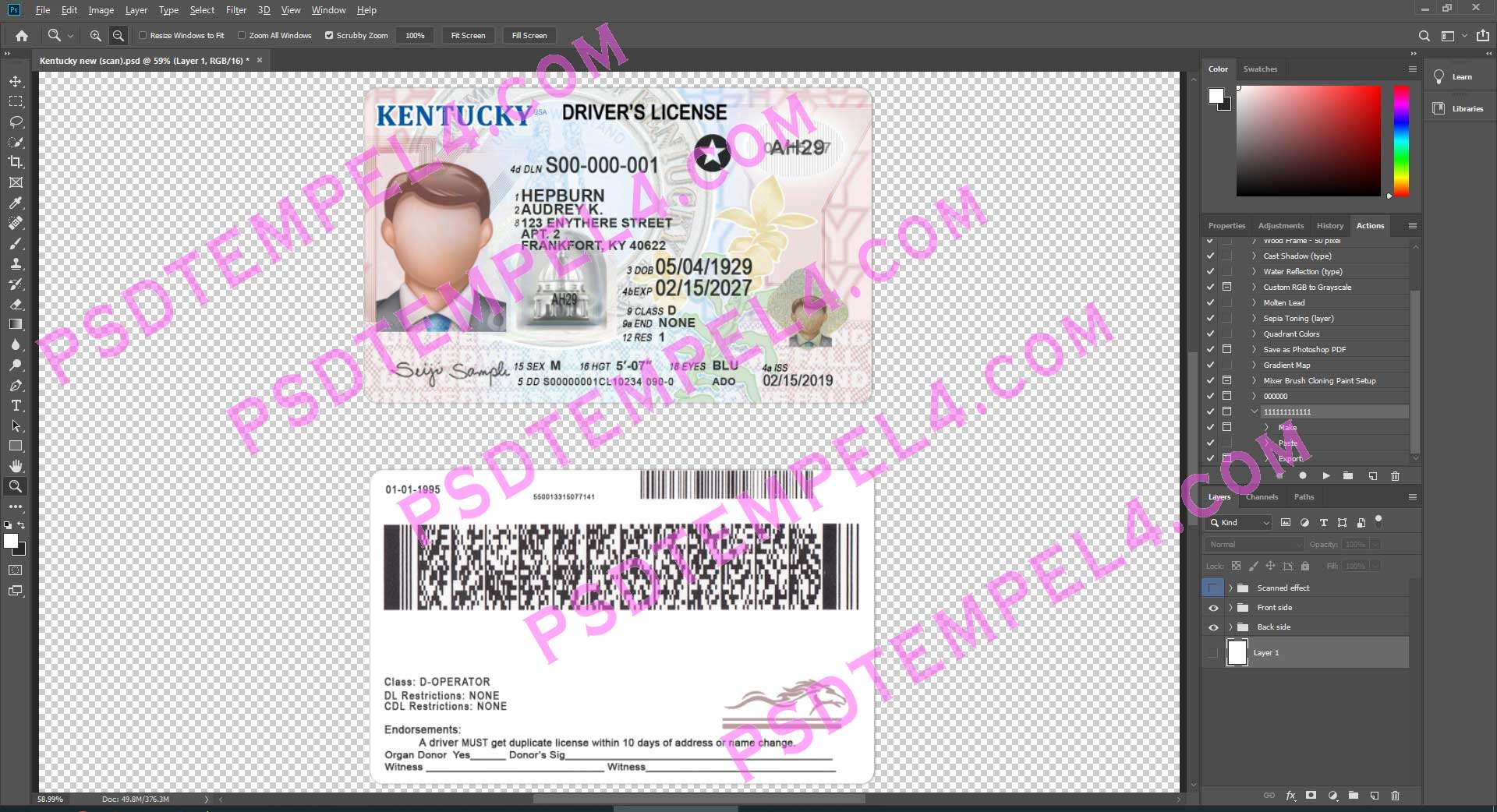 Download USA Kentucky Driver License Photoshop PSD File Template Fully Editable