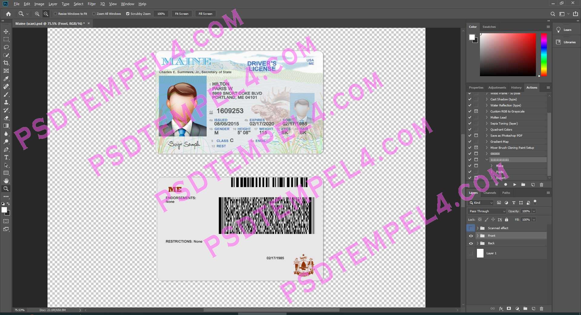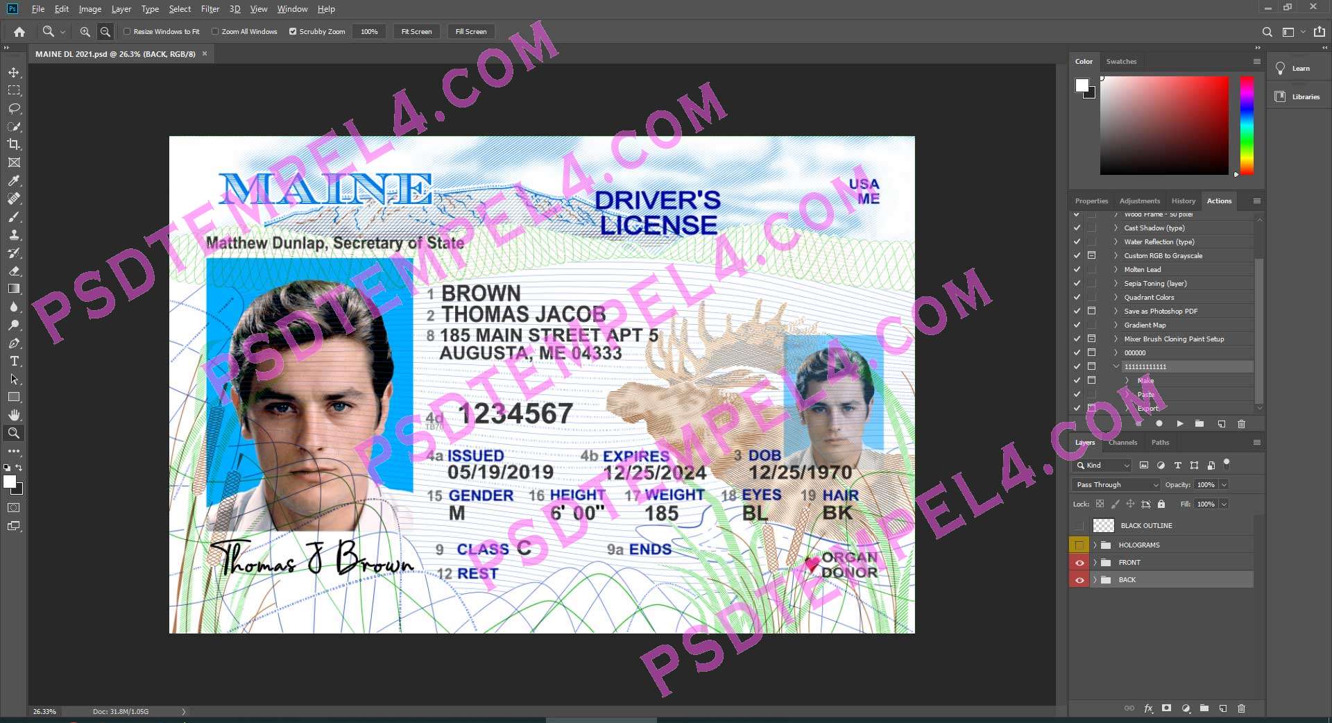 Download USA Maine Driver License Photoshop PSD File Template Fully Editable