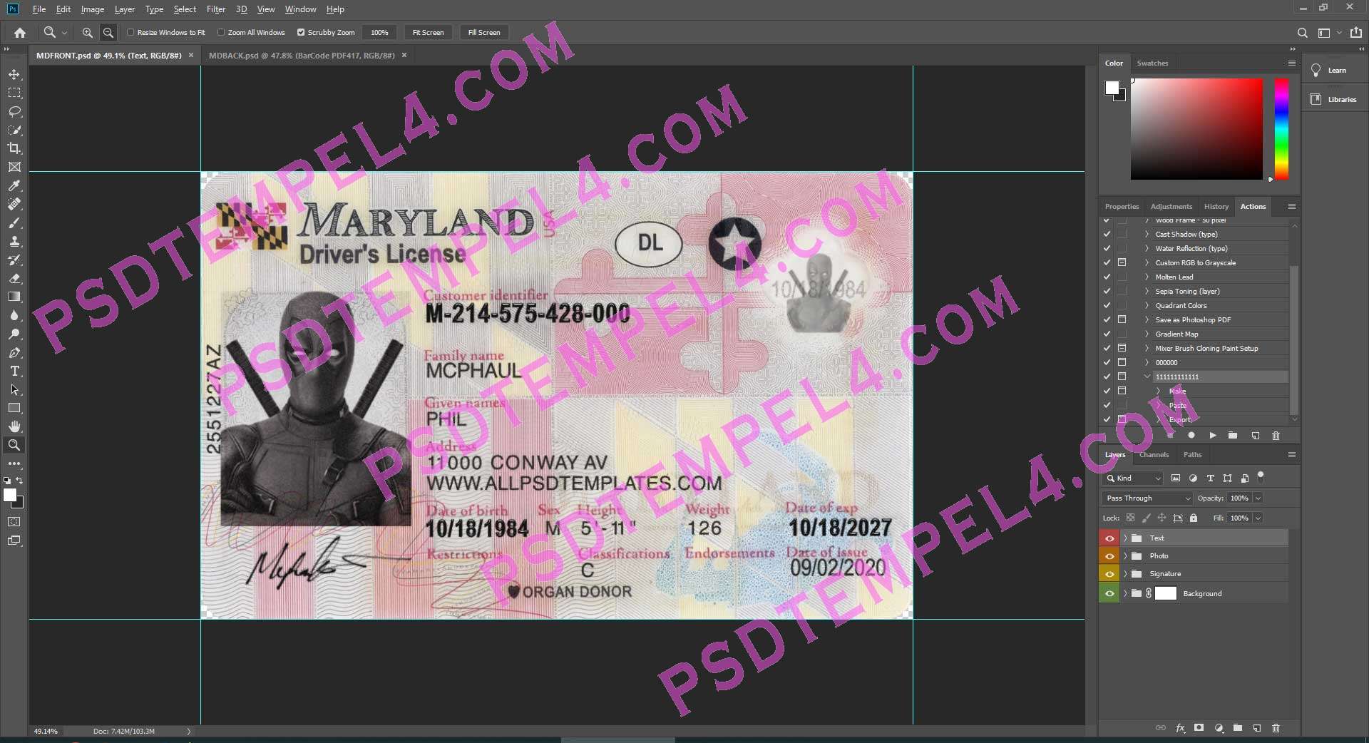 Fake USA Maryland Driver License PSD Photoshop buy Online