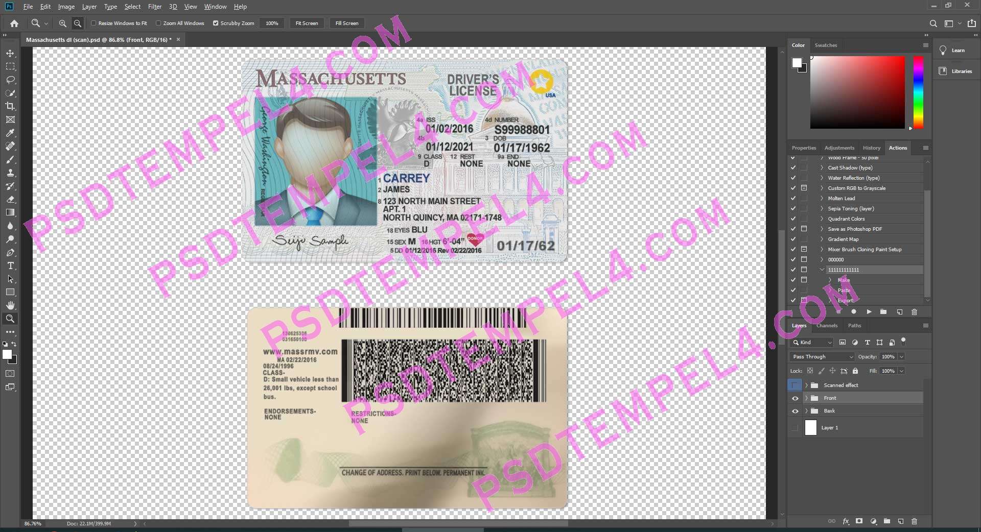 Download USA Massachusetts Driver License Photoshop PSD File Template Fully Editable