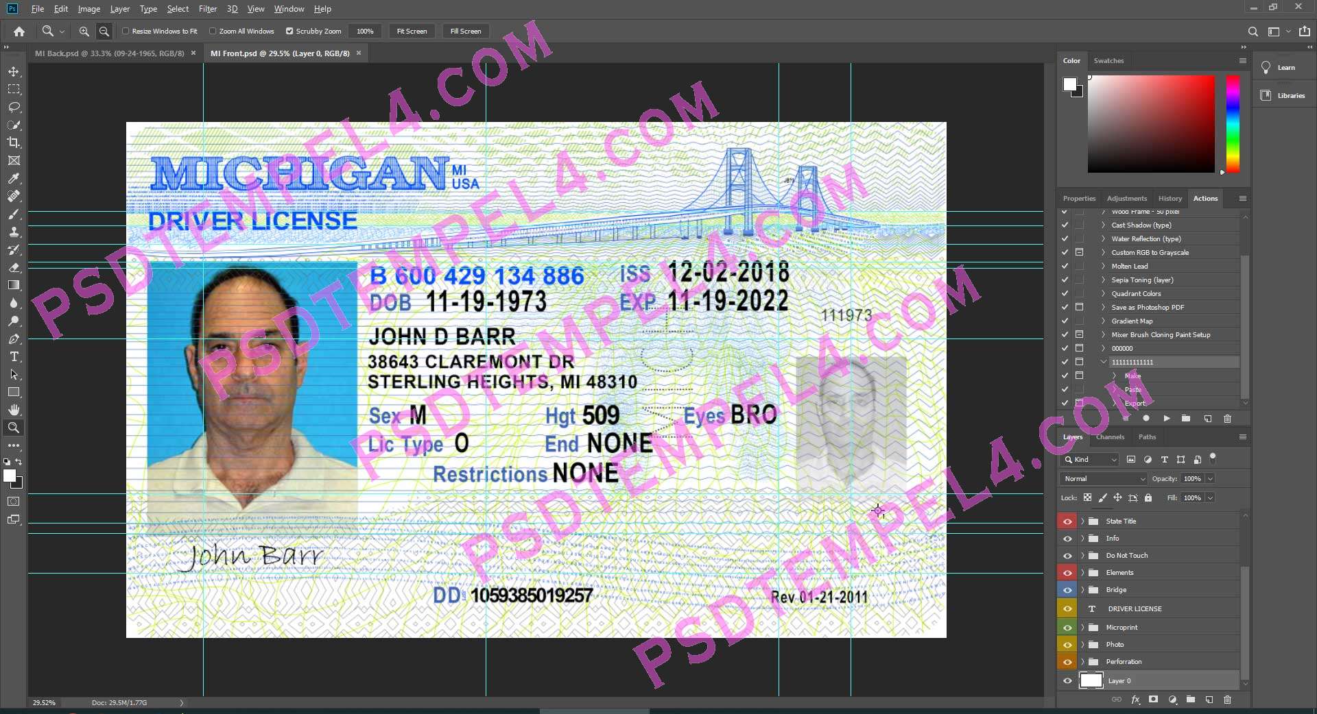 Download USA Michigan Driver License Photoshop PSD File Template Fully Editable