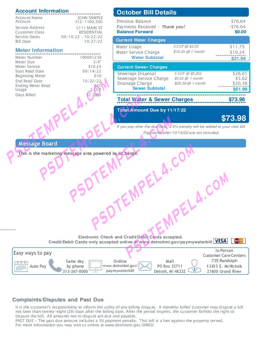 USA Michigan Water and sewerage department Utility Bill PDF File Free Download
