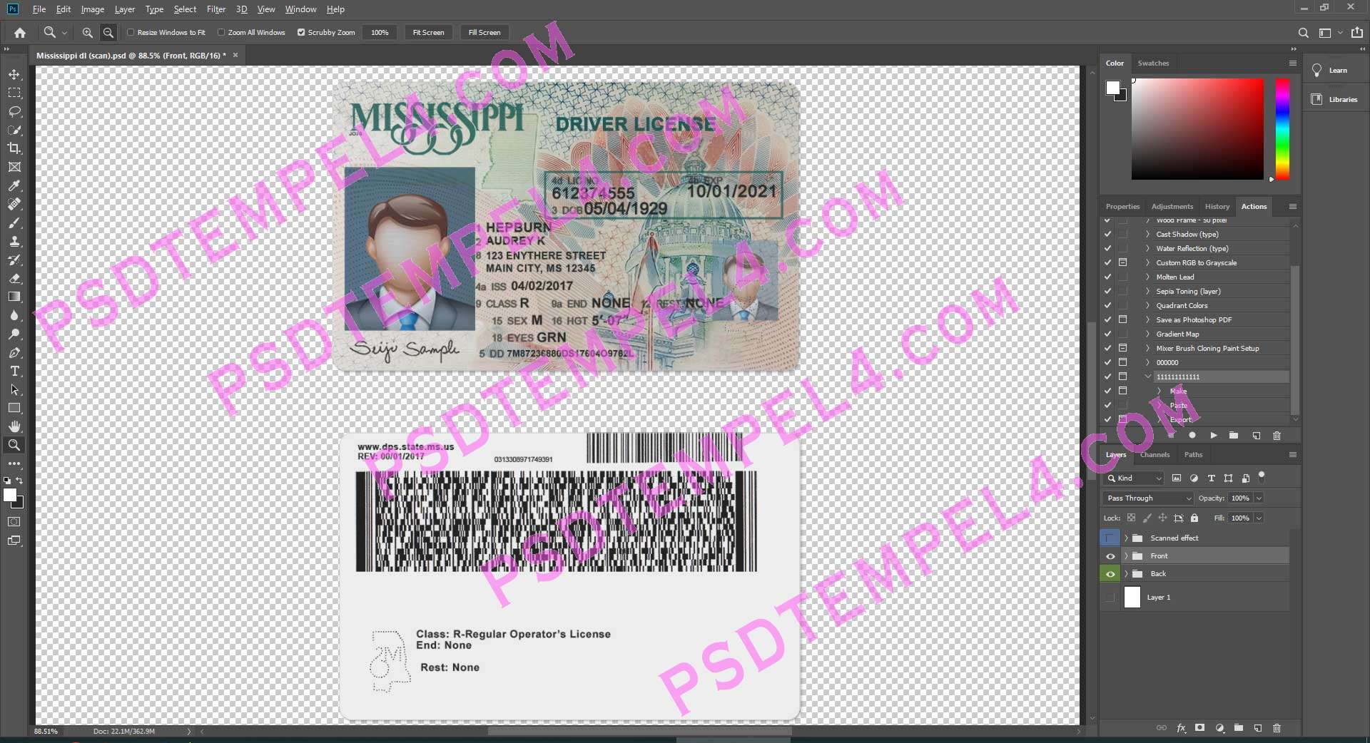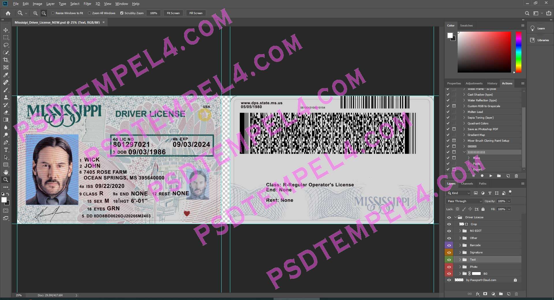 Download USA Mississippi Driver License Photoshop PSD File Template Fully Editable