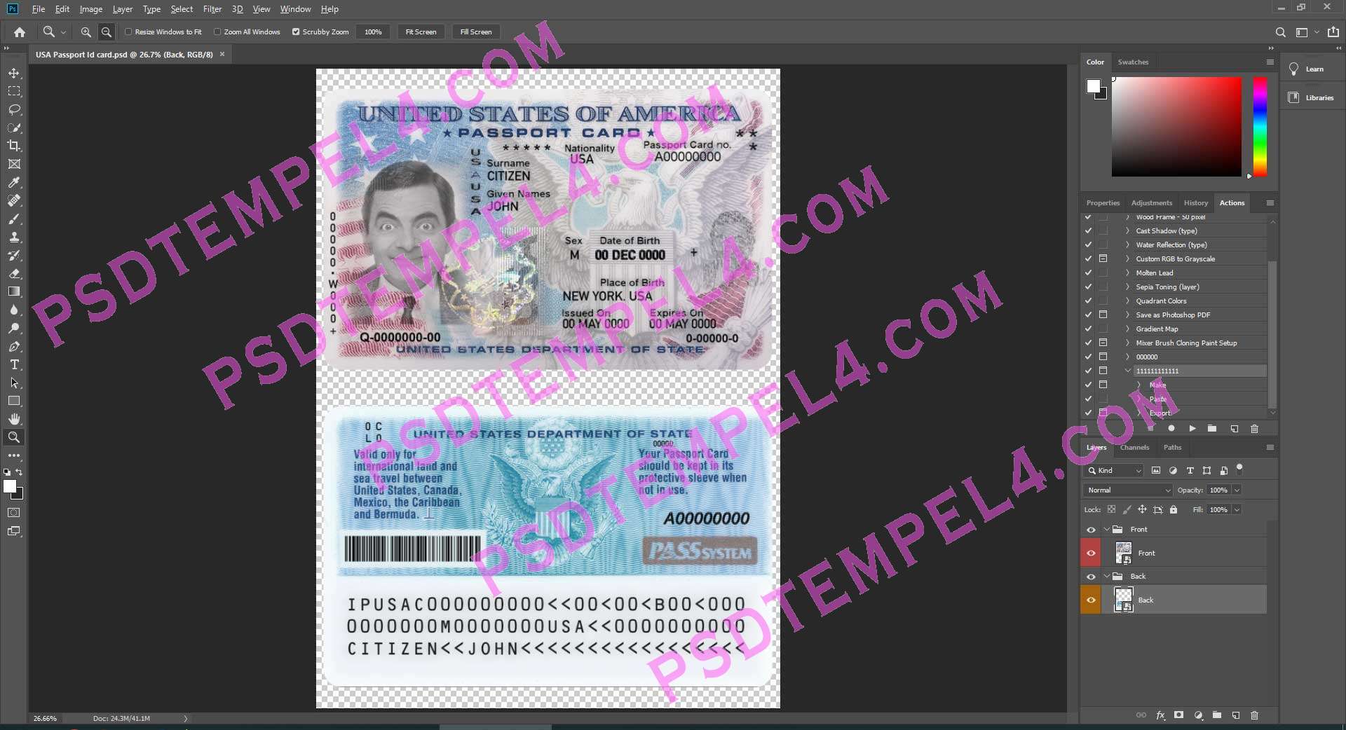 Download USA Passport ID Card national id card PSD File Photoshop Template Fully Editable