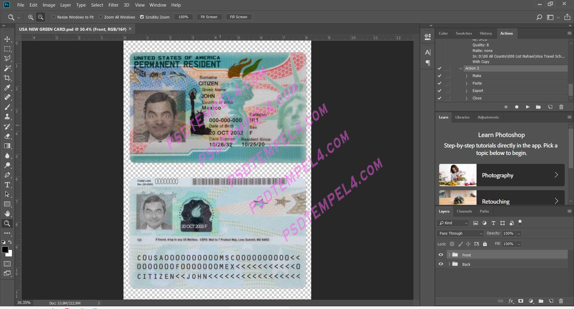 usa Resident Permit PSD Template