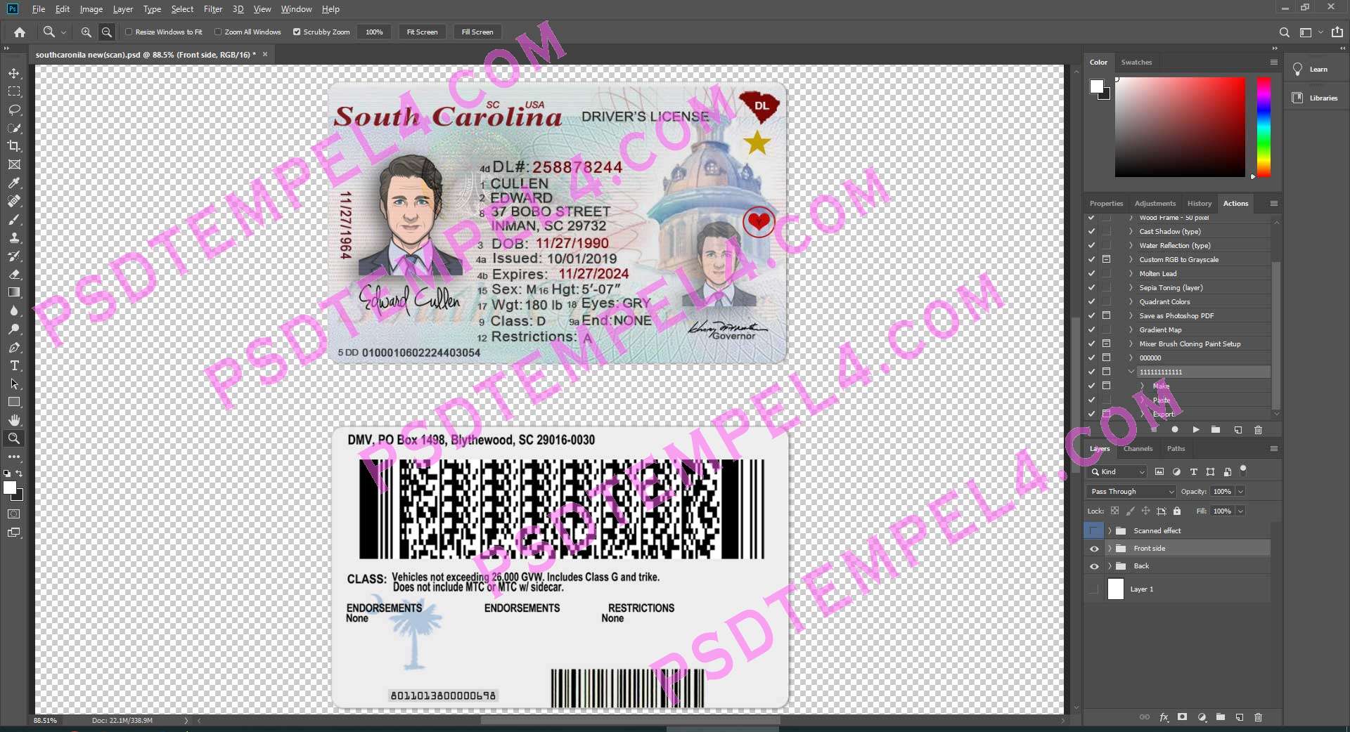 download USA South Carolina Driver License psd fake template fully editable