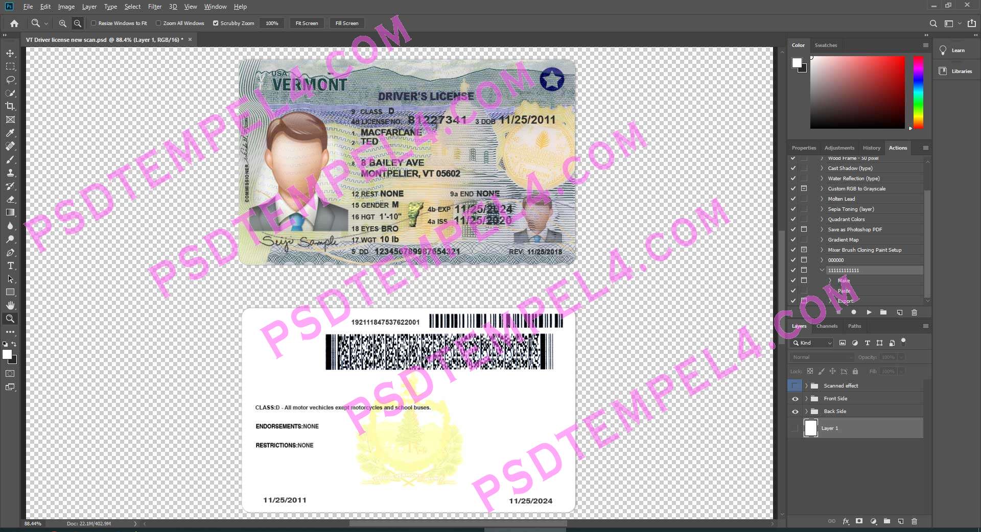Download USA Vermont Driver License File PSD templates high quality
