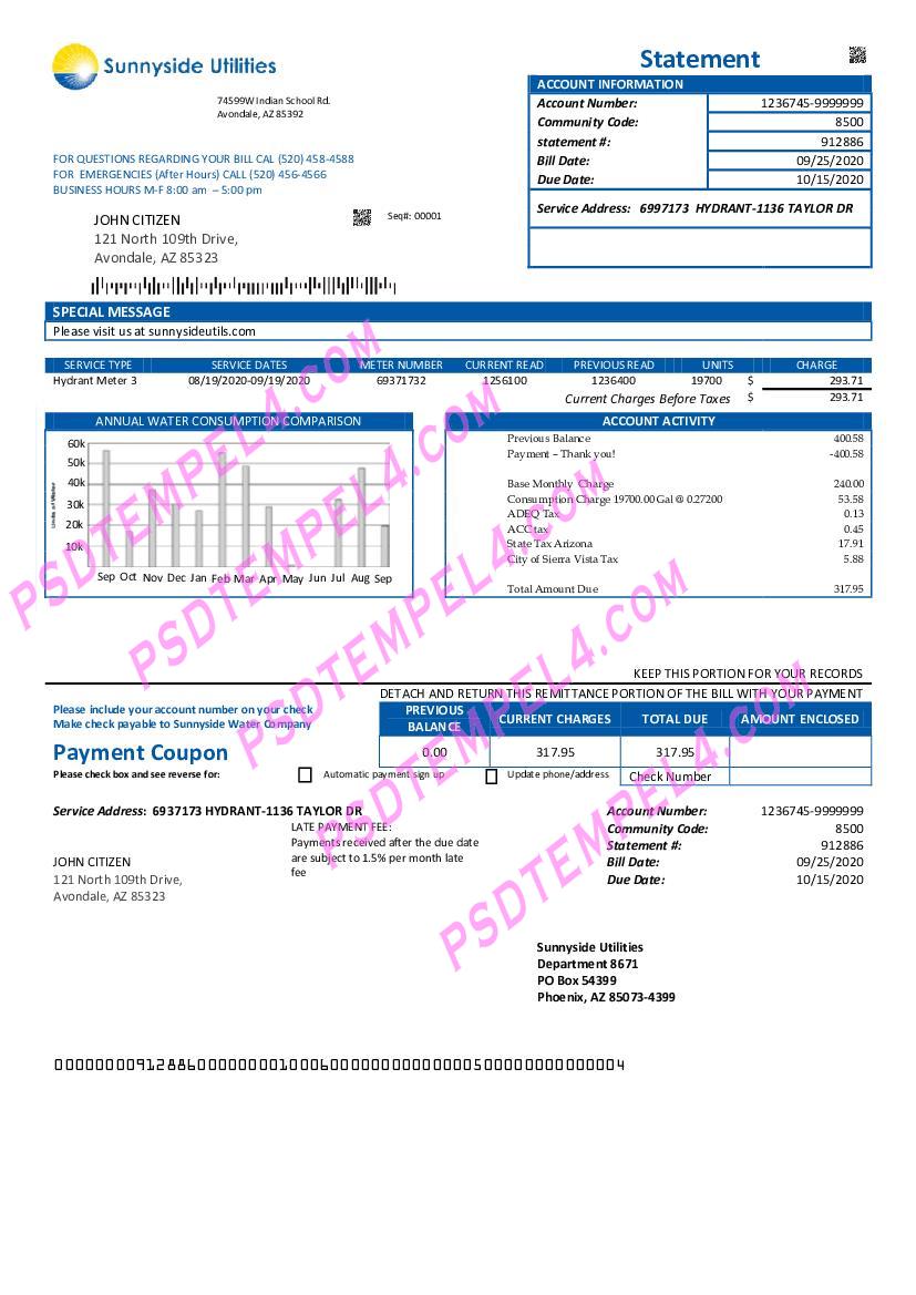For the most up-to-date formats, you can download USA utility bill 2025 versions. These updated templates reflect the latest design and format used by USA Washington Sunnyside Utilities water for the current year. Whether you need a new bill for proof of address or are managing administrative tasks, this updated version ensures you have the most accurate and current billing information.
