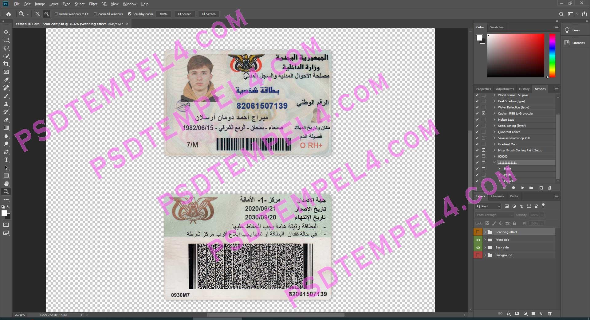 This is for to the id card PSD File Photoshop Template Fully Editable of the Yemen. the Yemen national id card PSD template has been made available to the public through the fake download shop in psd format and good price and high quality.